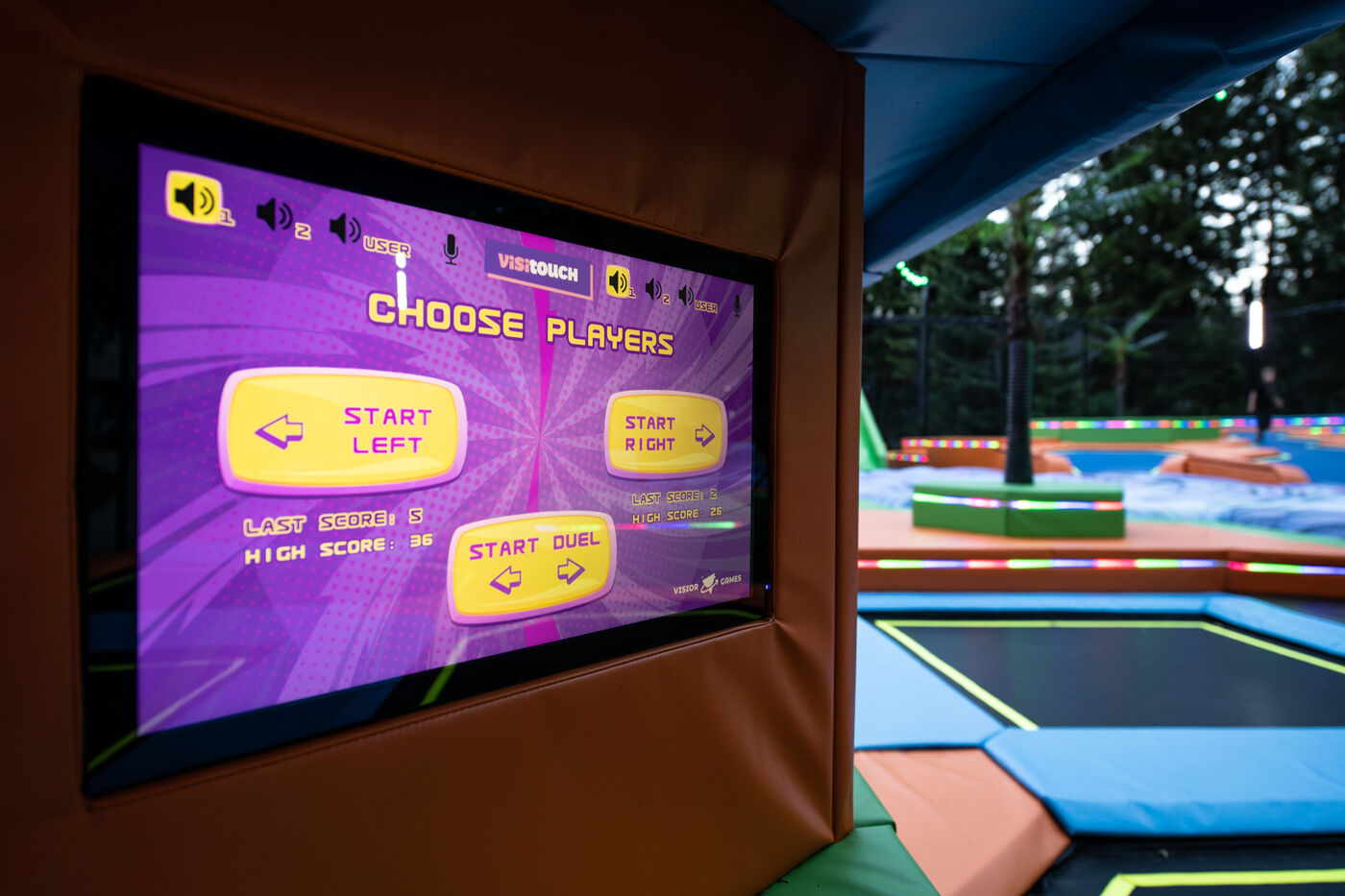 Our games can also be installed in outdoor parks. This outdoor Trampoline Park, featuring lights, sound, and interactive games, incorporates the latest technology, earning it the title of a Smart Park. Lighting isn’t only used for general illumination but is also integrated directly into the trampolines. Here, you’ll also find Visi Game and Visi Touch for an enhanced play experience.